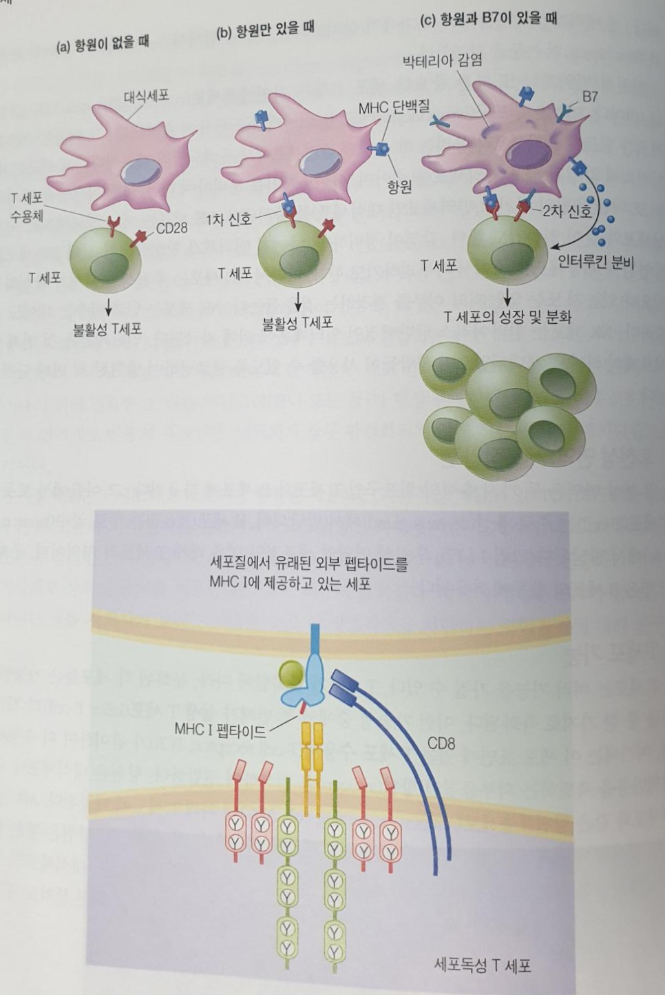 대식세포는 또 다른 분자도 제공하는데 B7이라고 알려진 단백질족이며, 이것은 CD28이라는 또 다른 T 세포 표면단백질에 결합합니다.